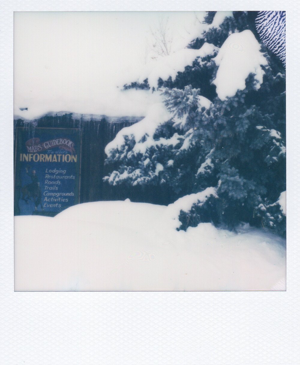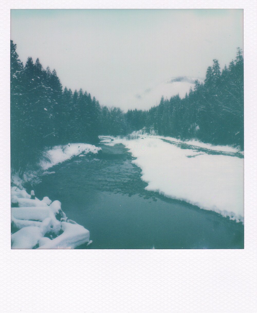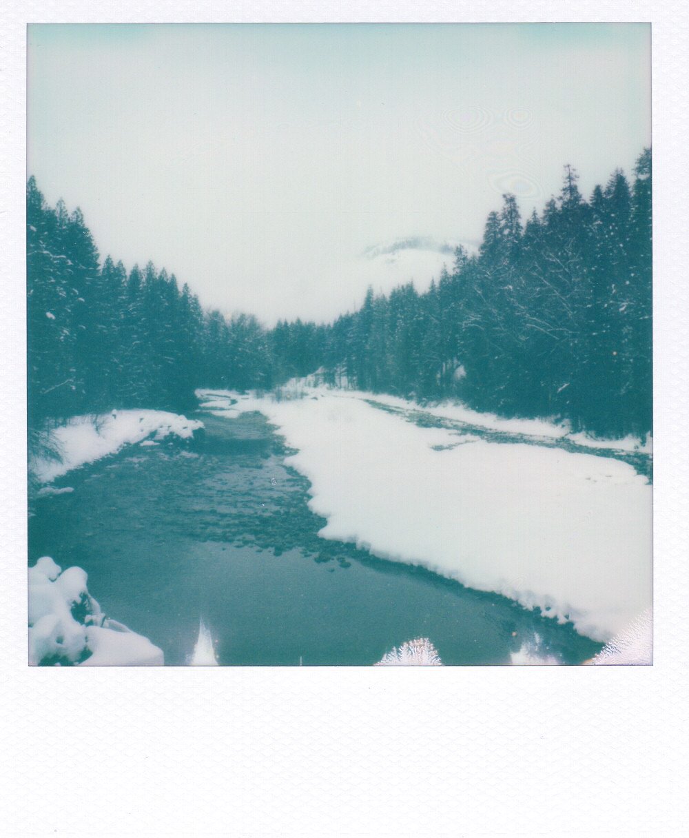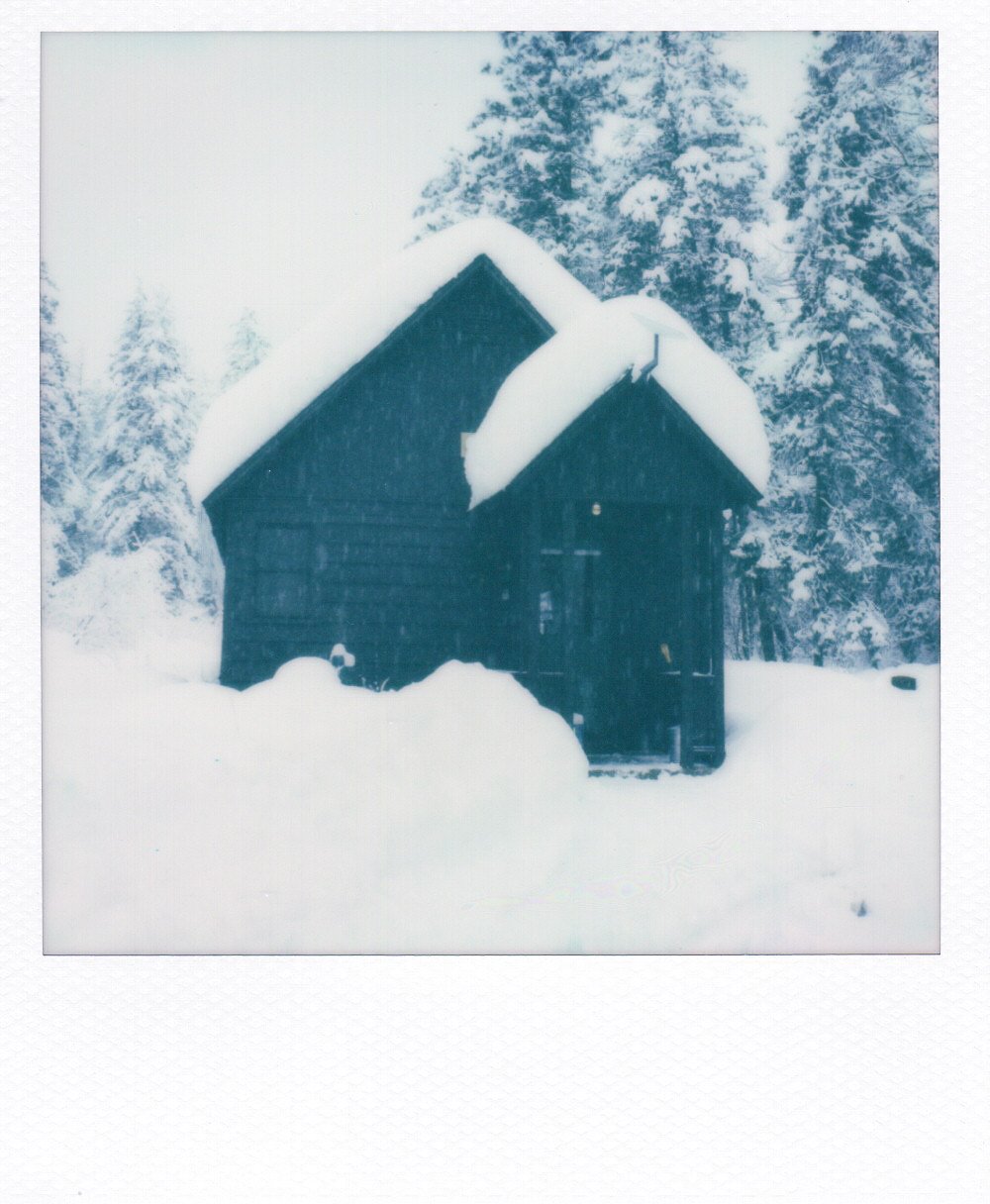 I selected a pack of i-Type film to shoot while on our New Year’s ski trip to the Methow Valley. Snow was abundant this year and there were plenty of scenes to turn my camera to. Polaroid says that film performs best between the temperatures of 55 – 82°F and this winter was maxing out somewhere near freezing, if we were lucky. Polaroid also says photographs taken below 55°F will often turn out over-exposed, lacking color contrast and with a green tint. They recommend doing all you can to keep the film and the camera warm before, during, and after shooting to ensure proper developing. I learned that it’s difficult to quickly pull out the film and tuck it into the warmth of a pocket while wearing thick gloves, so you’ll see my fingerprint on the edge of many of the images.
