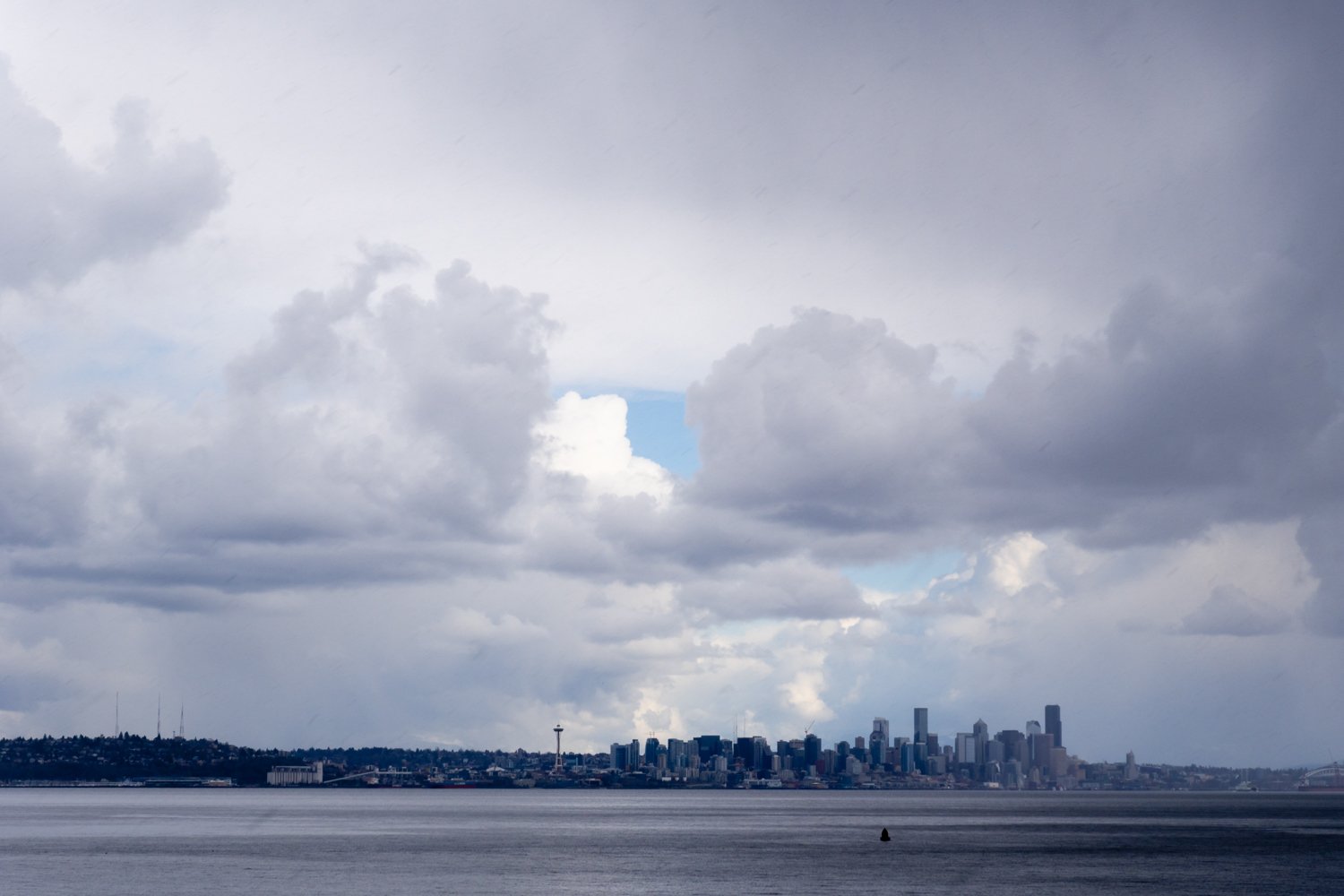 Planning a photo walk in Seattle, you can never be sure that the weather will cooperate. When a group of friends from The Click Community planned to meet for a photography outing on a Seattle ferry in March, we just hoped for the best. Little did we know, we’d see everything from sunshine to sleet during our meetup to ride the ferry to Bainbridge Island. We met at the ferry terminal, cameras in hand, excited to photograph the iconic Seattle skyline from the water. For a while, the light was perfect – highlighting the beauty of the sound and the city skyline in the distance.