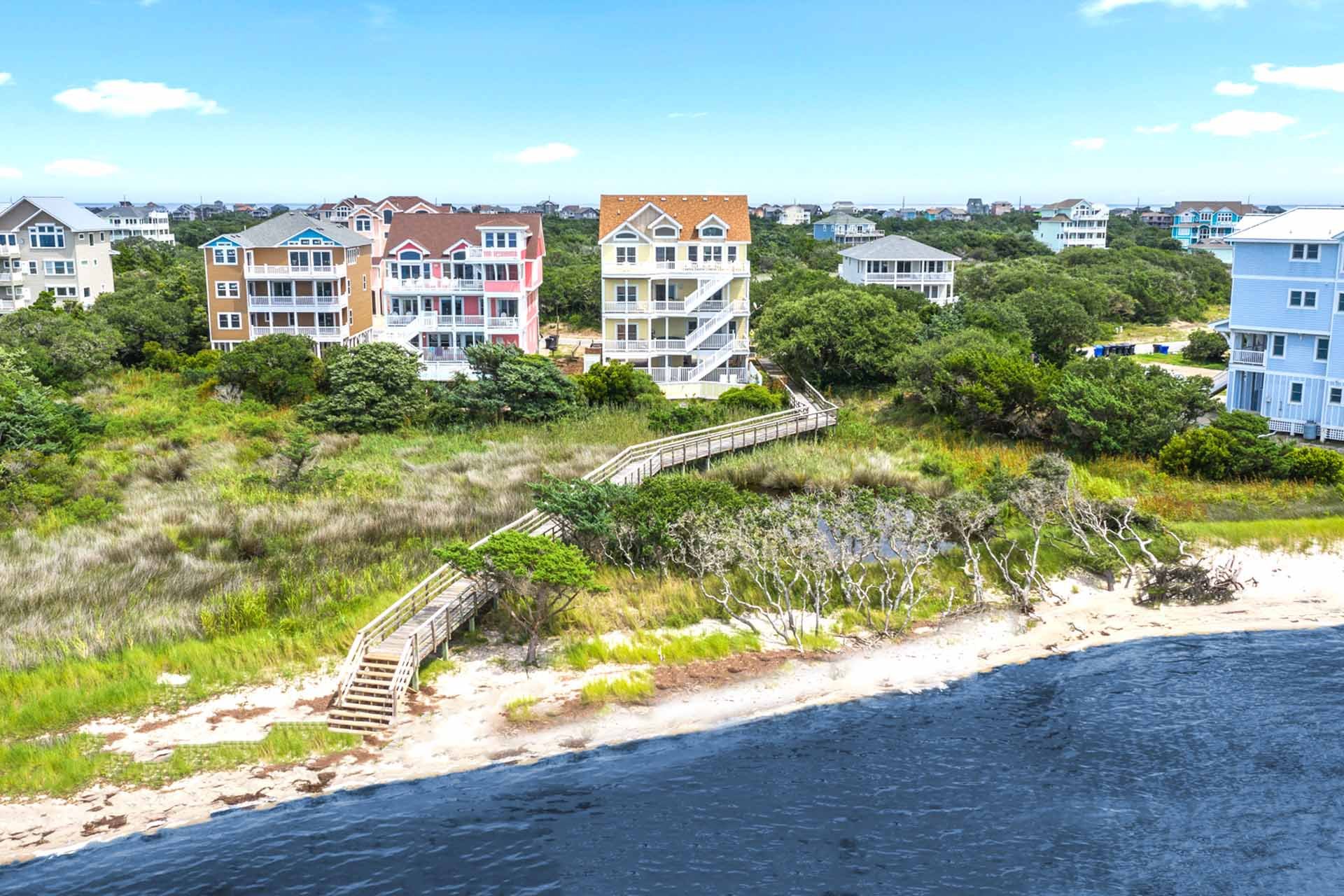 Situated on the shores of the Pamlico Sound, this home offers sunset views directly off the deck. A private boardwalk leads directly to the sandy shores providing a private spot to watch the sunset over the sound